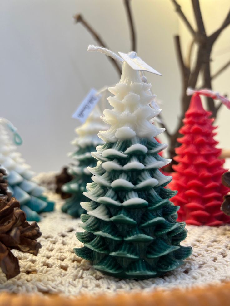Hand-poured with eco-friendly soy wax and delicately detailed with white “snow” accents, it’s a timeless piece for festive décor, gifting, or creating cozy winter ambience.